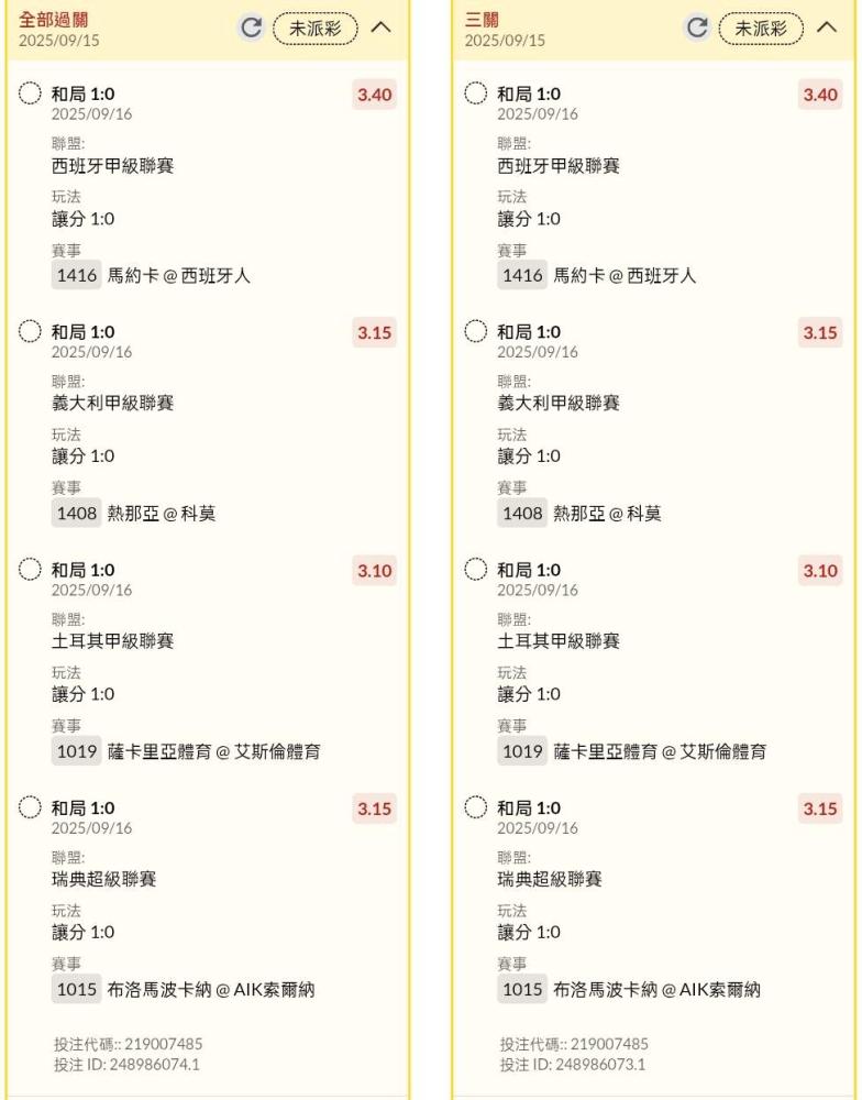 >> 半夜場讓分串關分享小玩2單試單(4場賽事)