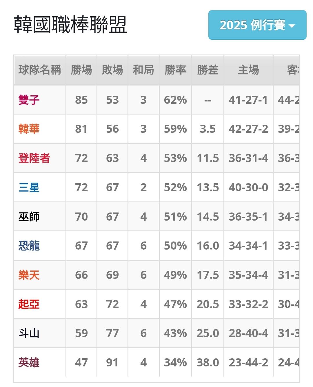韓國職棒 >> 韓職季後賽晉級卡位情況