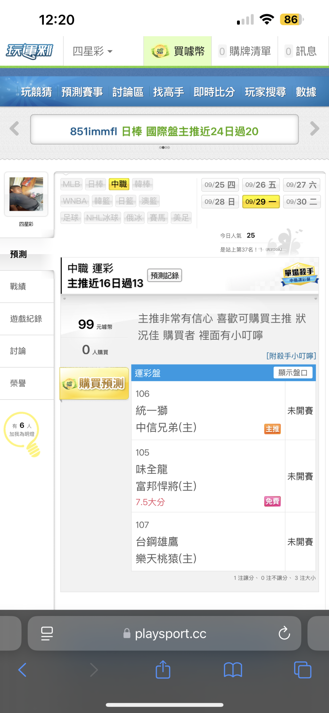 >> 單場殺手 昨天4過3本月主推16過13戰績非常佳 主推連勝延續下去! 味全vs富邦