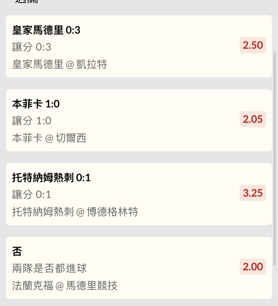 皇馬看賠率對手是有球的