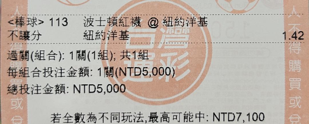 MLB >> 一萬二兩張輸贏