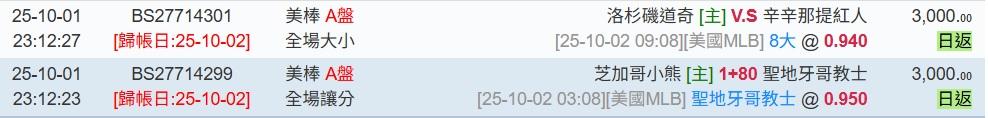 早上道奇上半+全場都過,明天一樣2場