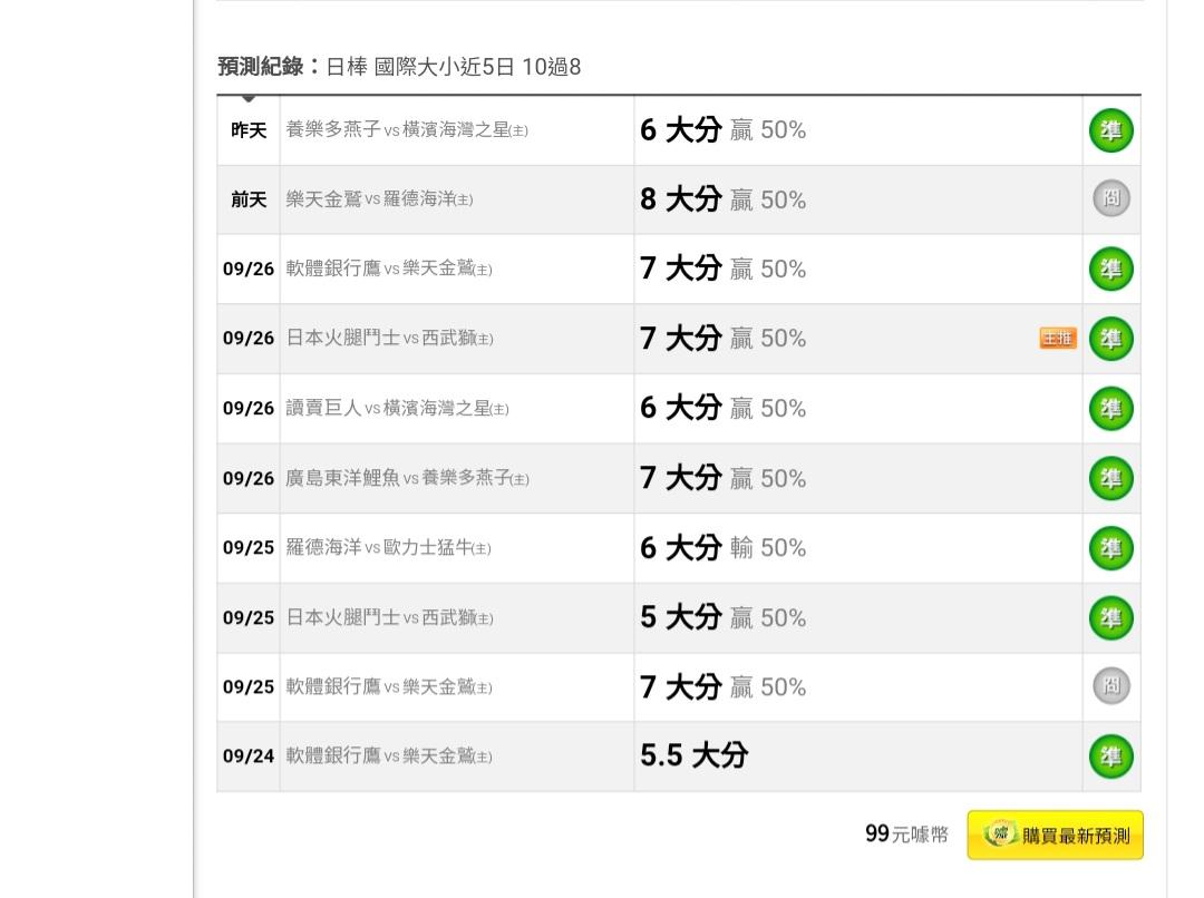 日本職棒 >> 本期莊殺第二名【大小分近5日10過8】主推一場水噹噹