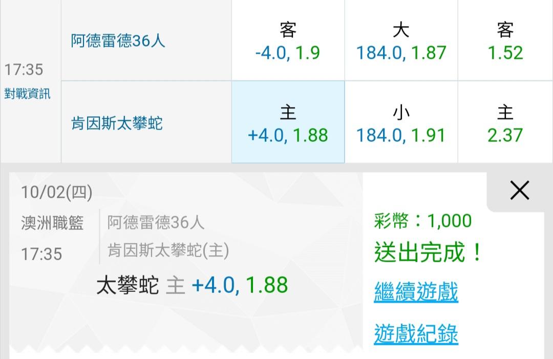 澳洲職籃 >> 下午5點半主推一場大小分水噹噹