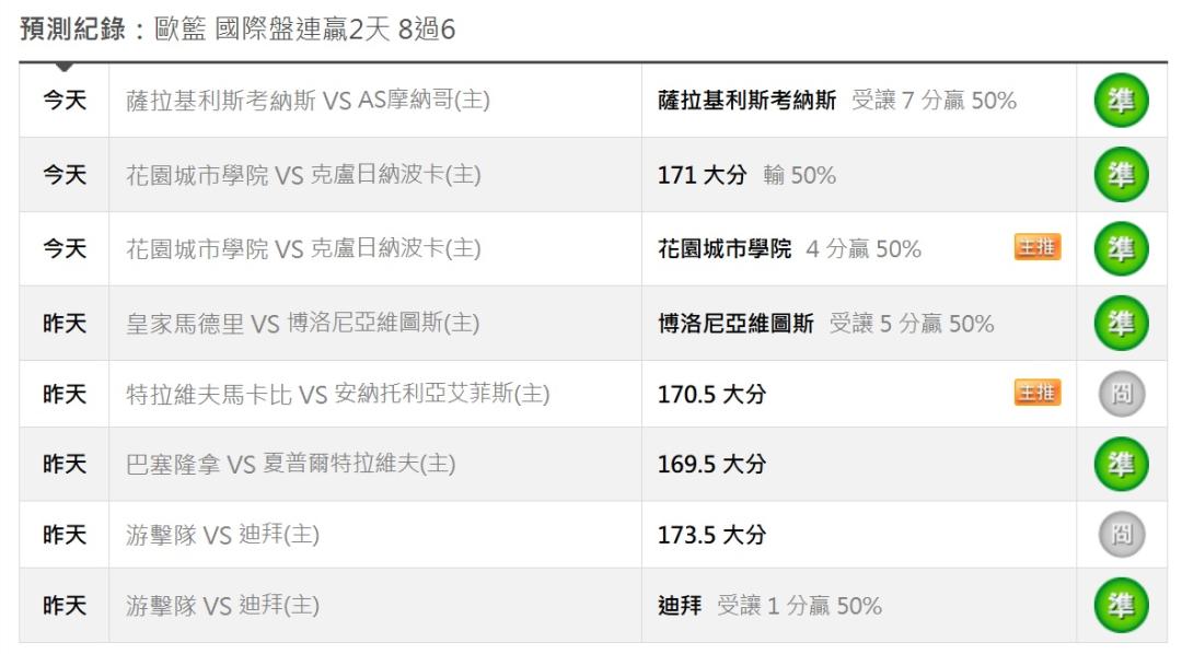 >> 歐籃分享1場(國際 連贏2天 8過6)