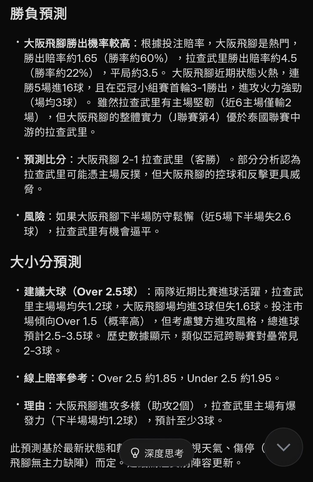 >> Ai預測大阪飛腳