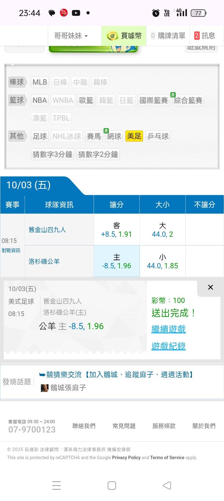 美式足球 >> 美足主推連贏中,有台彩單場,玩什麼球不是重點,能贏錢都是好球