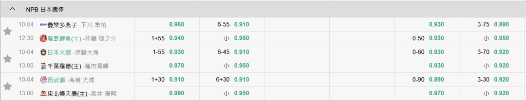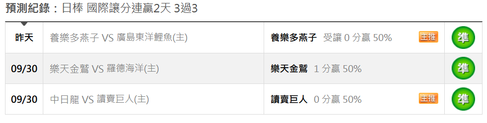 日本職棒 >> 10/04【國際主推連過7天】【國際主推100%】初盤分享+星期六讓分版路推薦!!