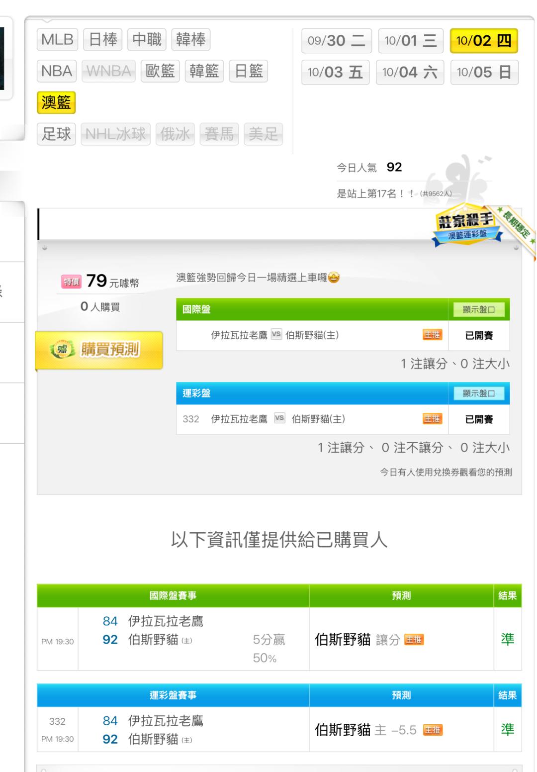 澳洲職籃 >> ✅🏀週四雙盤2過2大獲全勝18:00信心主推一場輸贏
