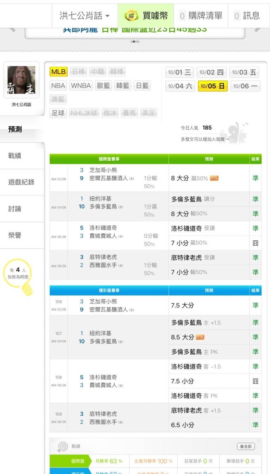 >> 洪七公顯靈 🔱 💯本月大小盤5過5全壘打,(10/05)MLB版路大分、大分、小分、小分✅