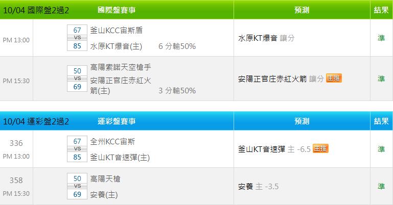 韓國職籃 >> 10/05 韓籃推薦【昨日雙盤 4過4】【國際盤主推連過2日】【小叮嚀有注數推薦】【今日特價】