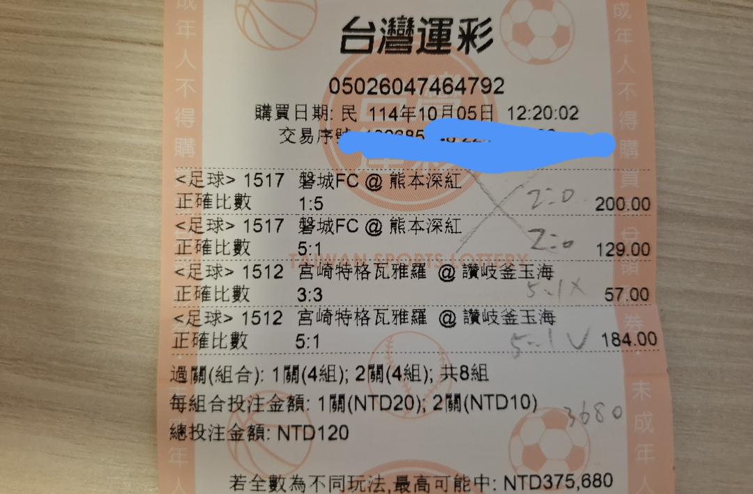 好久沒中正比了,終於,不過最近5:1,5:0,4:1、4:0的機率好像比以前高一點開出(日丙、德丙、全國聯、瑞典超〈=個人覺得比較會開,不過投注還是要量力而為啊)