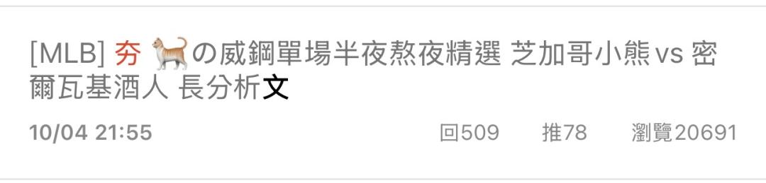MLB >> 🐈の威鋼單場 芝加哥小熊vs 密爾瓦基酒人 大戰一觸即發