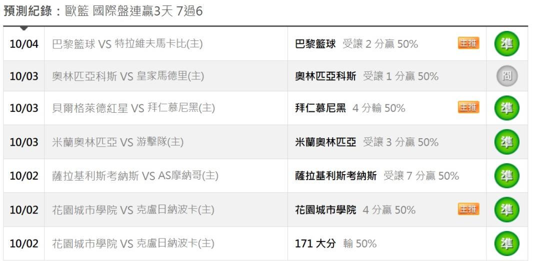 >> 歐籃分享1場(國際 連贏3天 7過6)