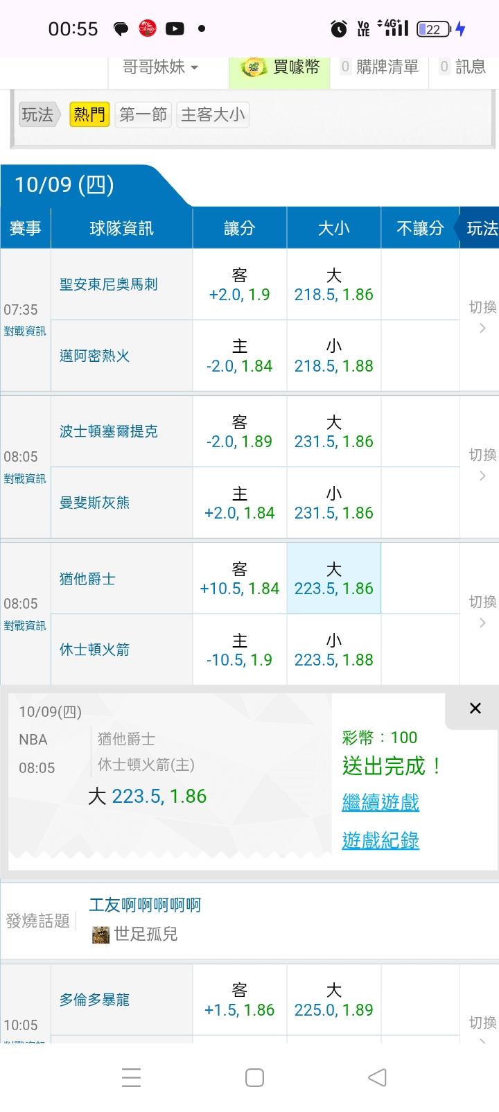 NBA >> 美籃早上8:00(提克vs灰熊)主推輸贏,沒贏下次免費