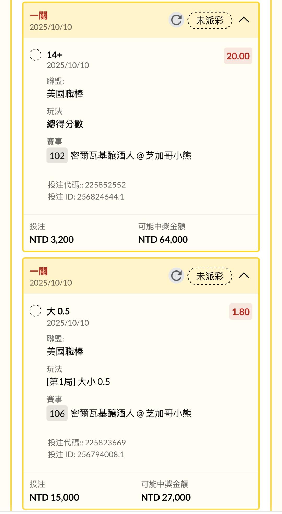 MLB >> 10/10 酒人&小熊 14+🤣🤣