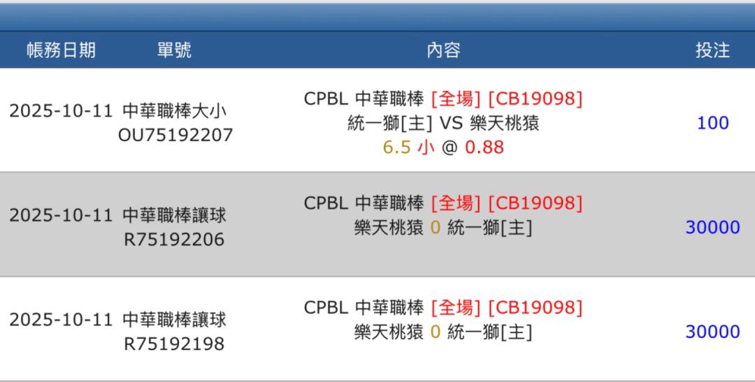 中華職棒 >> 季後挑戰賽「主推 新台幣 6萬」樂天桃園 VS 統一獅,這場我很看好,直接油門用力!