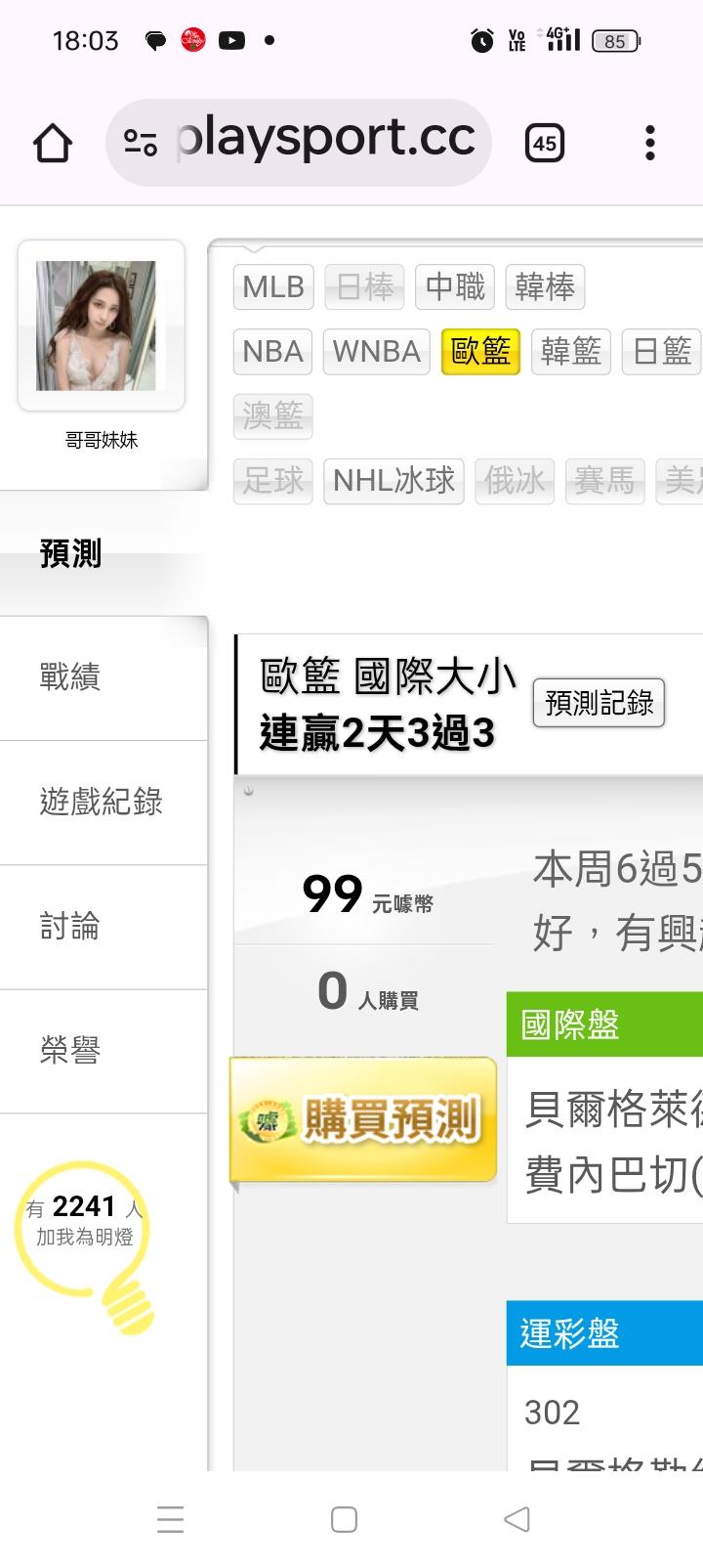 歐洲職籃 >> 歐籃3過3大小分連贏,半夜1:45分主推大小分輸贏(紅星vs費內)