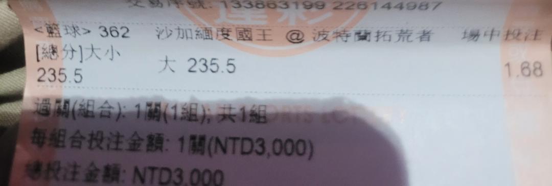 NBA >> 全場235.5大 嘎嘎 收