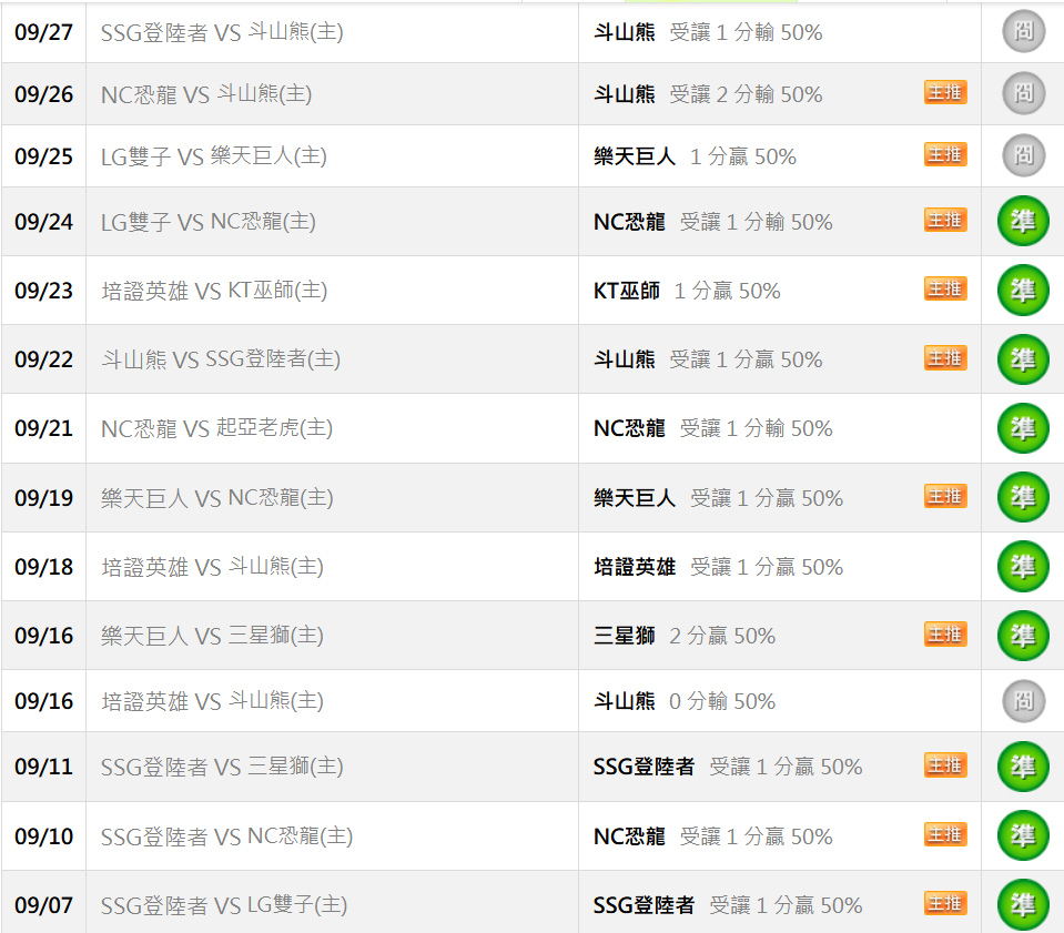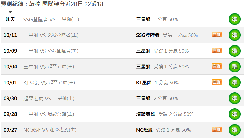 韓國職棒 >> 10/14【國際主推近10過9】【國際讓分 近20日22過18】初盤分享+上半場受讓推薦!!
