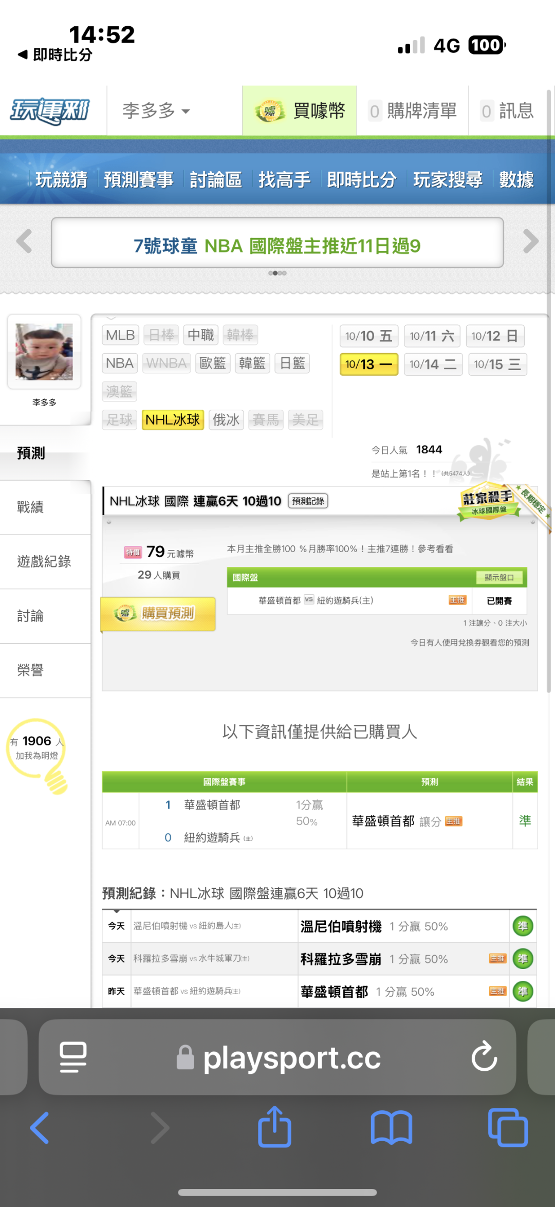 NHL冰球 >> 本月主推全勝100 %月勝率100 %主推9連勝!特價參考看看