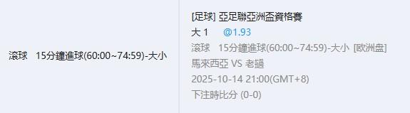 足球 >> 10/14 滾球 亞洲盃來一下
