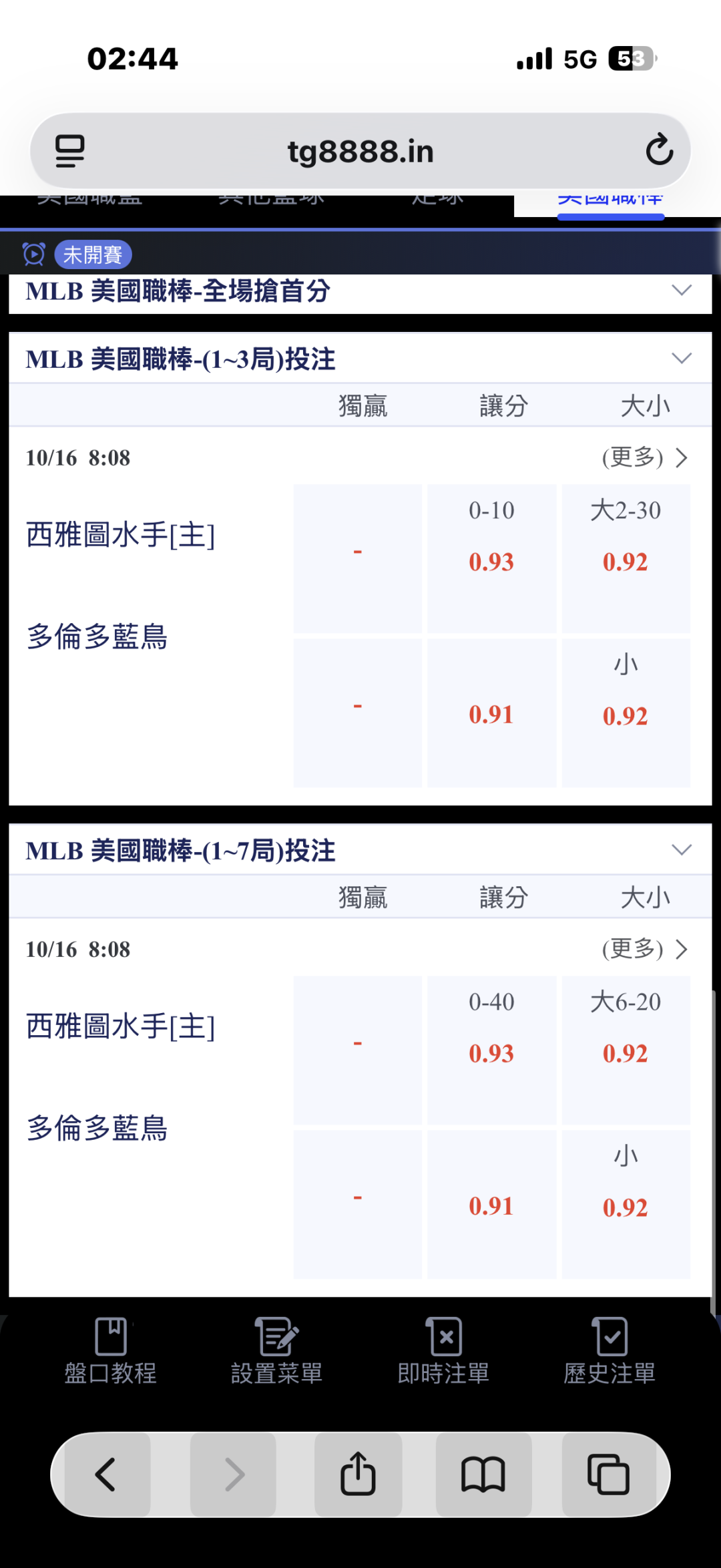 大小我覺得自己看不準全場的部份走大走小,一直覺得上半會有開轟感覺好像不只一發,但下半又覺得牛棚噴分應該噴在藍鳥那而水手的牛棚不太覺得能受傷害到多少🤣全場的大小分真的不好買一點XD但上半的大分相對的看好很多XD