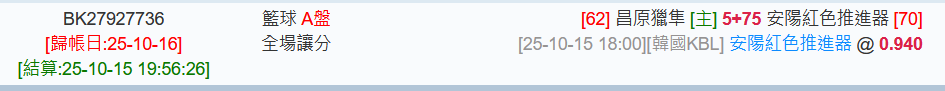 韓國職籃 >> 10/15【雙主推2天4過4】【國際盤連贏2天 3過3】初盤分享+上半場讓分推薦!!