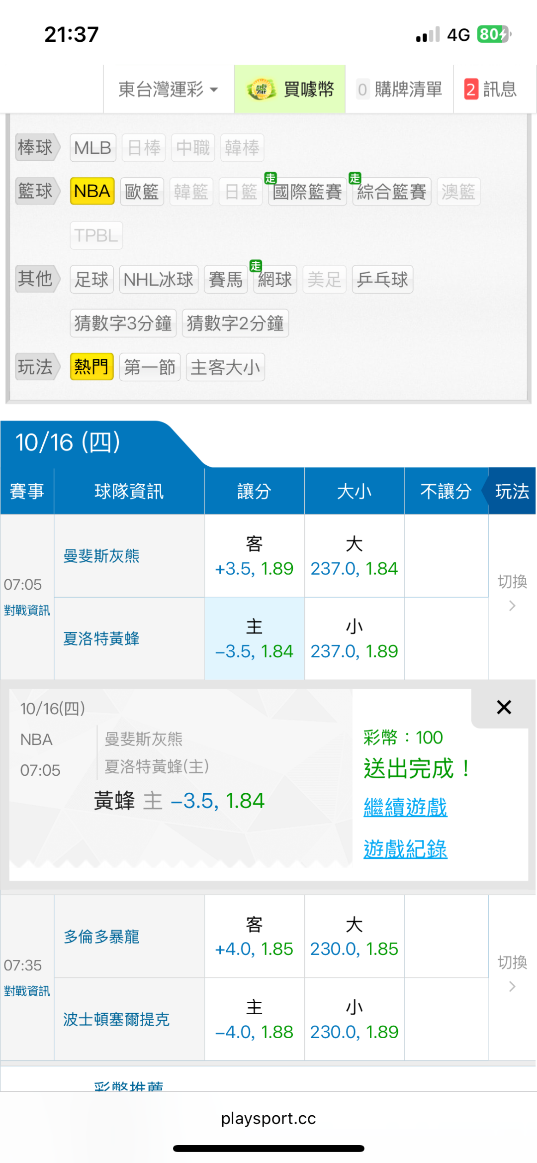 NBA >> 10/16NBA國際盤【近10日贏9日】【主推近13日過10】主推信心滿滿(貓場)特價79~