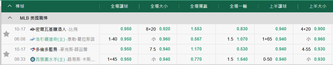 MLB >> 10/17【412期國際莊殺第2名】【本季國際主推第14名】初盤分享+受讓版路推薦!!