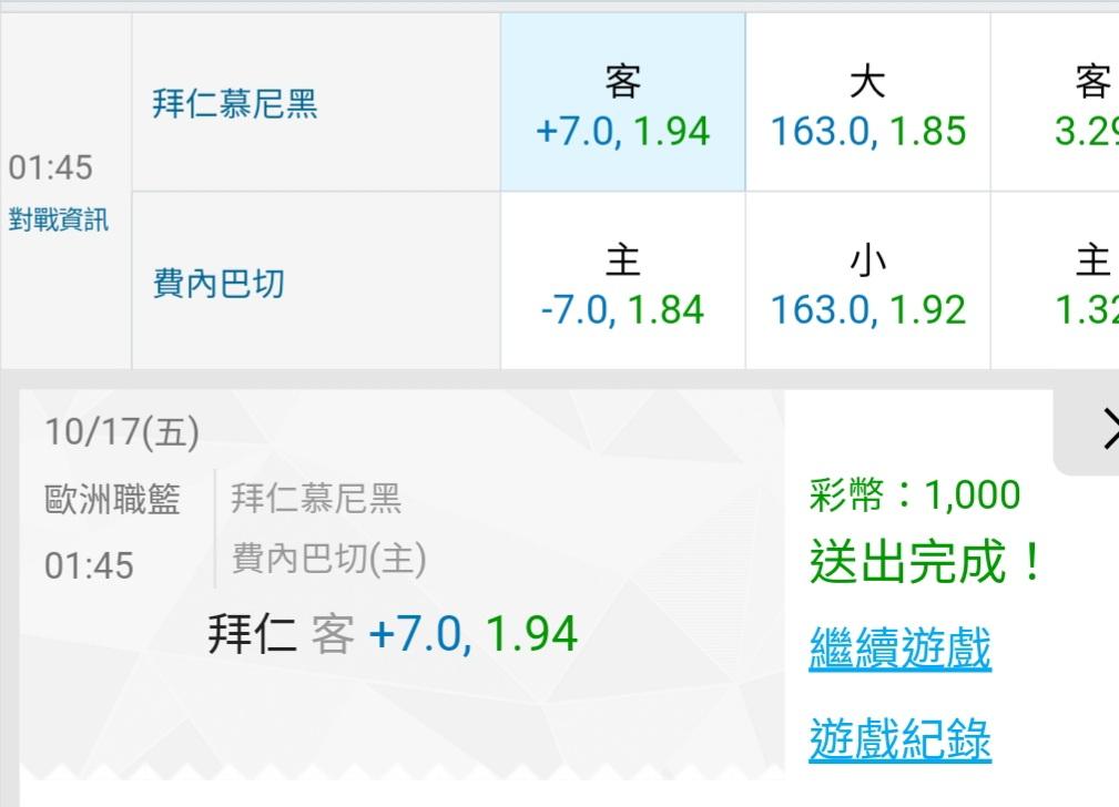 歐洲職籃 >> 昨天雙盤6過5收雙主推……明天主推一場水噹噹