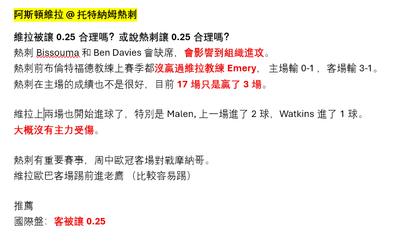 足球 >> 【MOFU足球預測】英超 - 阿斯頓維拉 @ 托特納姆熱刺
