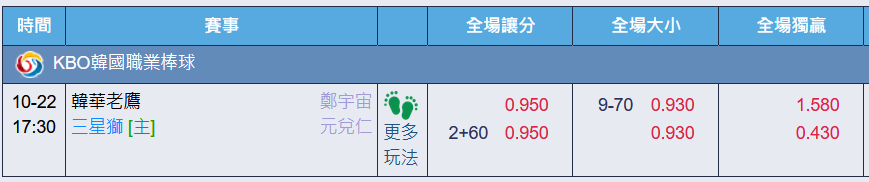 韓國職棒 >> 10/22【國際主推近14過13】【小叮嚀3注全收】 初盤分享+上半場小分推薦!!