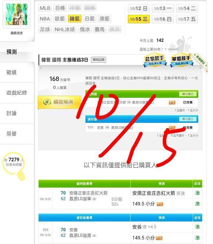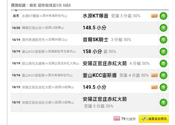 韓國職籃 >> ⭐⭐買牌要找近況好的,國際連贏5天8過8勝率100%,信心主推99%貓場,歡迎參考。