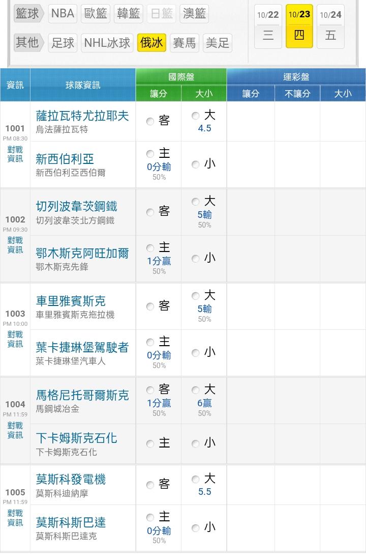 俄羅斯冰球 >> ⭐⭐~~~10/23俄冰盤口分享~~~⭐⭐