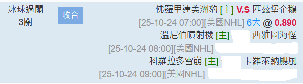 NHL冰球 >> 10/24【國際主推連過4天】全場大分推薦!!