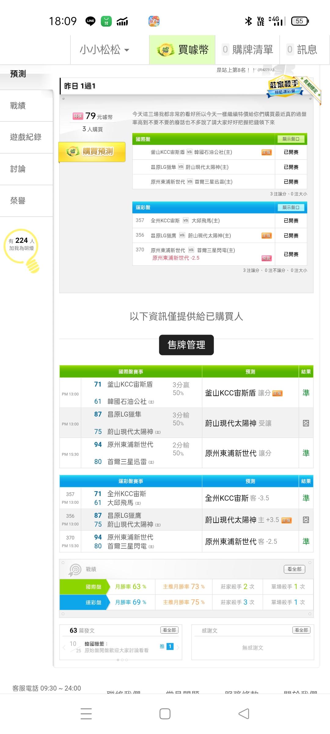韓國職籃 >> 原始盤開盤歡迎大家討論看看