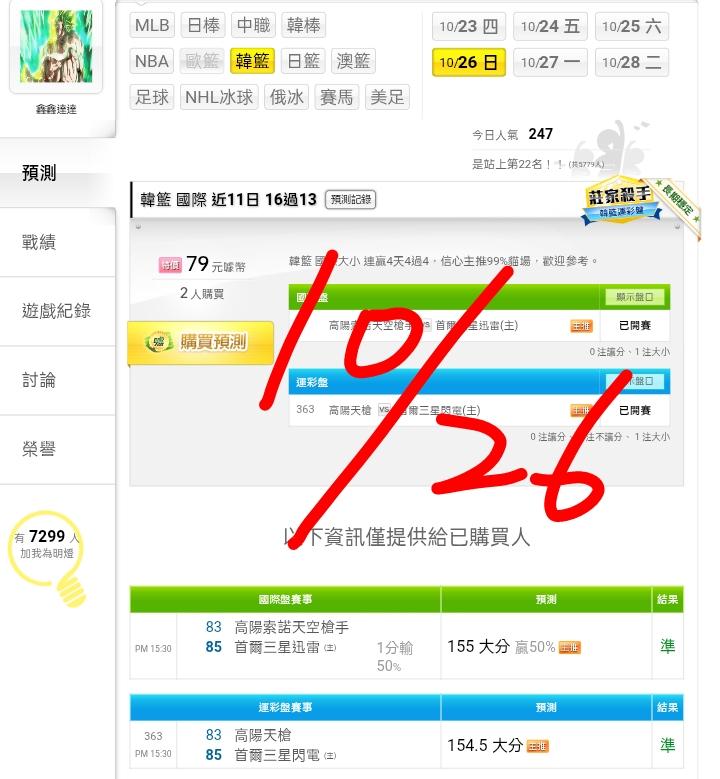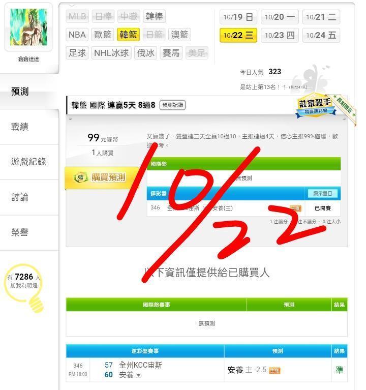 韓國職籃 >> ⭐⭐買牌要找近況好的,韓籃國際近11日 16過13,信心主推99%貓場,歡迎參考。