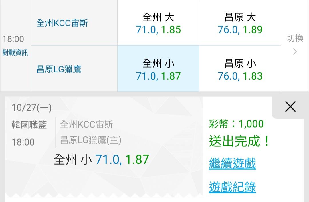 韓國職籃 >> 主推一場讓分盤水噹噹