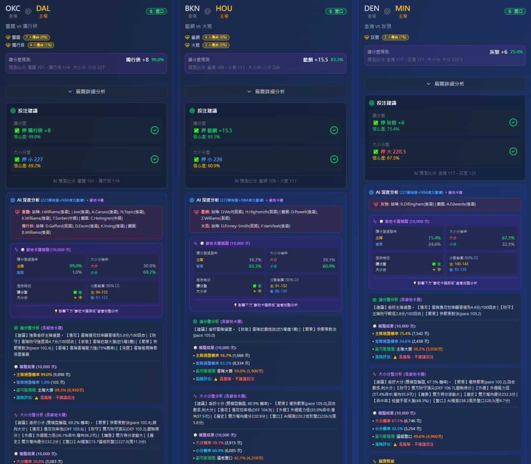 >> 今日11過5【AI預測NBA第七天|10/28場次】4588場數據*227項特徵*1萬次模擬結果