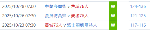 NBA >> 10/29 NBA 76人 vs 巫師 76人能否取下開季4連勝並且過盤?