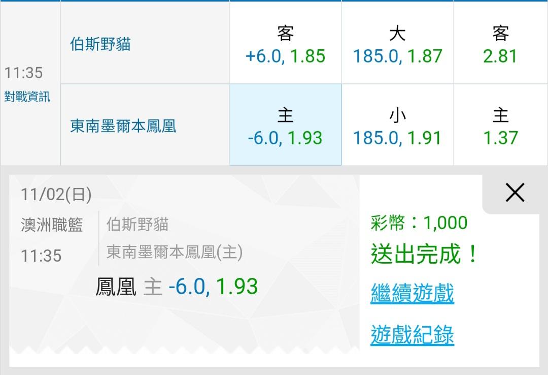 澳洲職籃 >> 昨天雙盤4過4全收