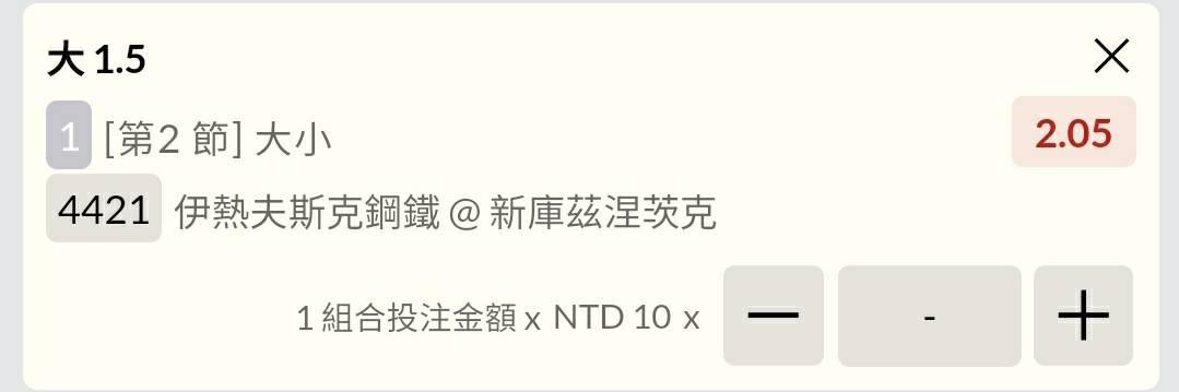 1. 第2節 大1.5球,賠率2.05