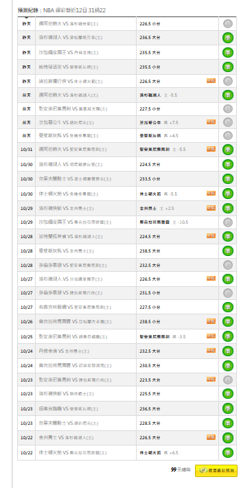 >> 11/ 05 NBA 🏀 運彩 近12日 31過22
