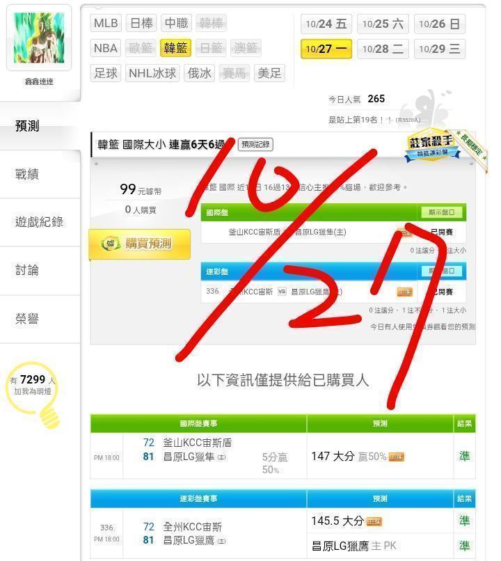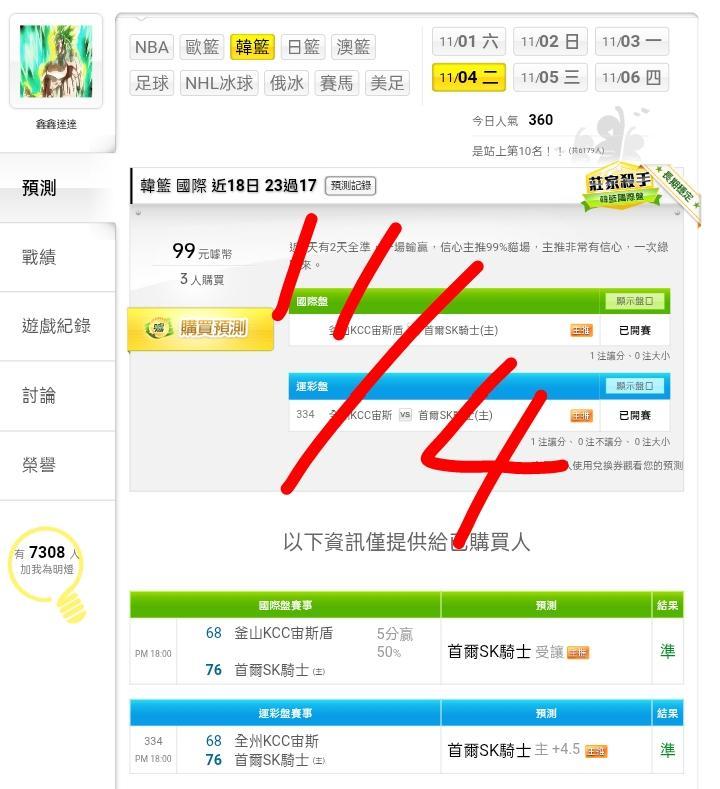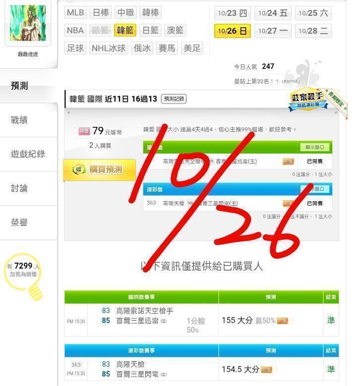 韓國職籃 >> ⭐⭐昨日全準,近5天有4天全準,韓籃國際近19日24過18,一場輸贏,信心主推99%貓場