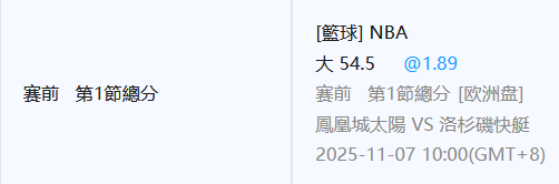 NBA >> 11/07【國際主推連過9天】【國際大小 近9日19過16】第一節大分推薦!!