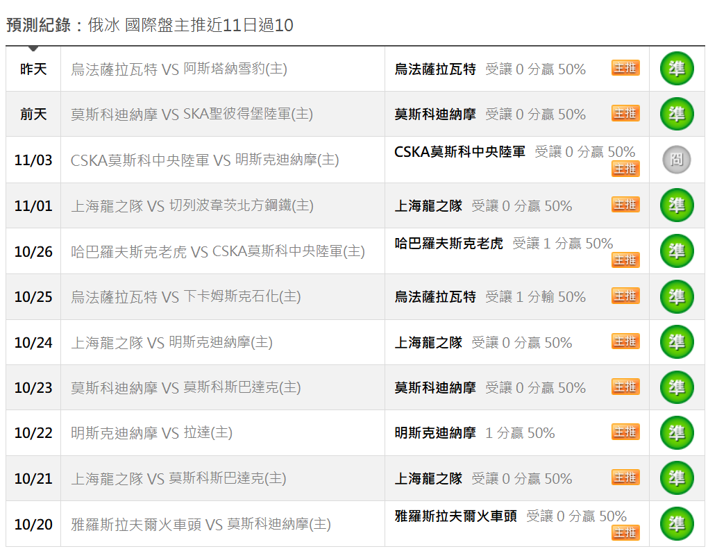 俄羅斯冰球 >> 又全過了 [連贏2天 4過4 大獲全勝]-[主推 近期 11過10]-[凌晨 高信心場 二場決勝]