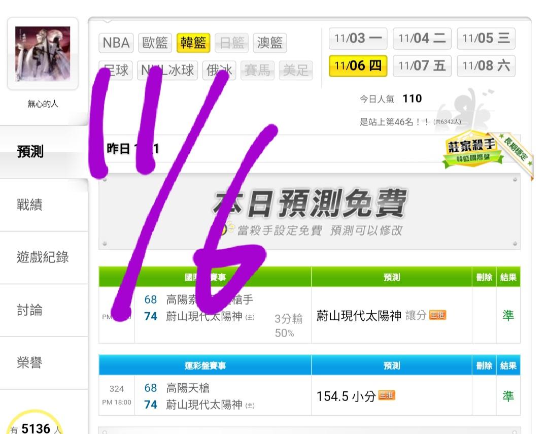 韓國職籃 >> 昨天雙盤2過2全收……今天主推一場拼了啦