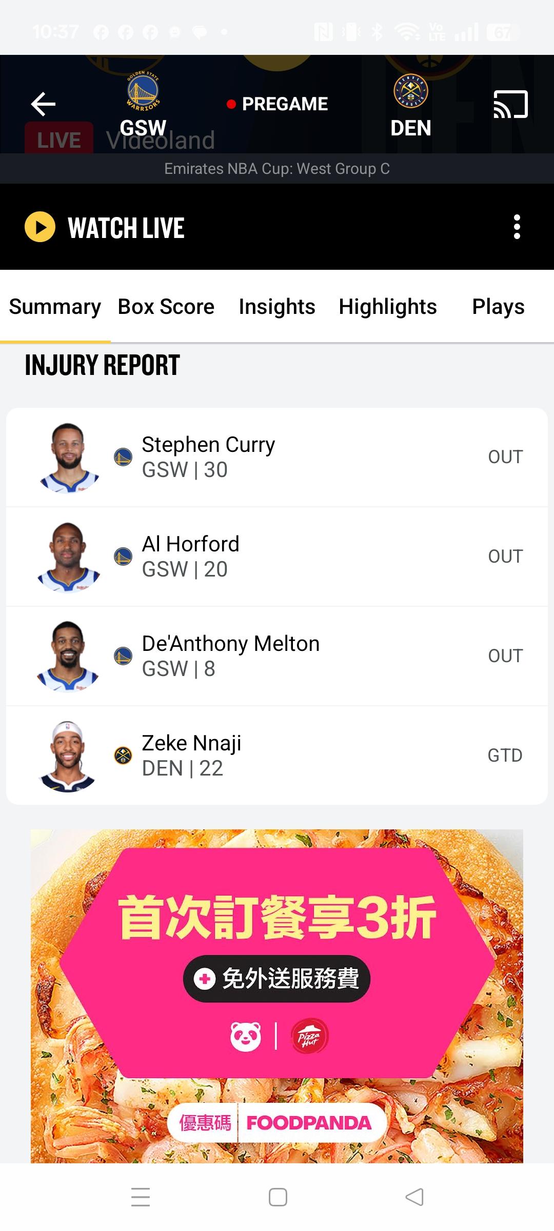 NBA >> 勇士咖哩不上,老巴跟綠師父有上,但加休1個老佛爺