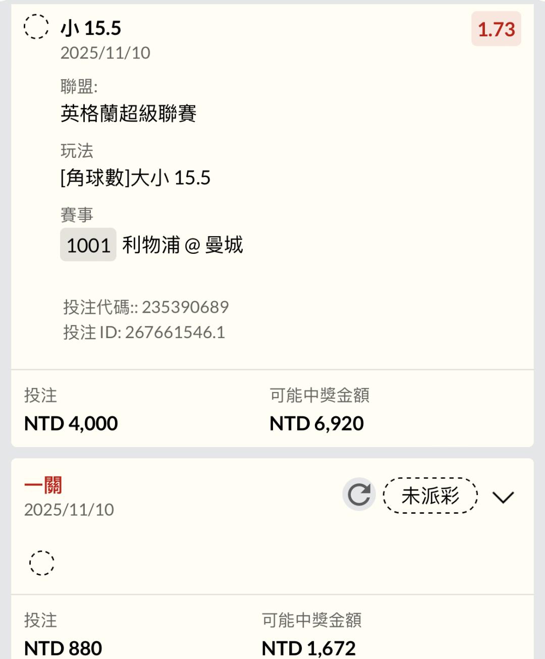 不過我選擇捏半場小1.5 賠率更高一點 兩倍多